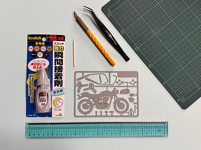 ランナーの空いてる所に瞬間接着剤を少量出します。
